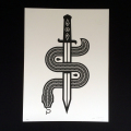 サンディエゴ在住のアーティストNick McPhersonよるSnakeシルクスクリーンポスター。スネークとダガーという定番モチーフをNickらしいキャラクーテイストで。2011年にEdition Size:50にて制作された作品。是非ともフレームにセットの上飾ってください。