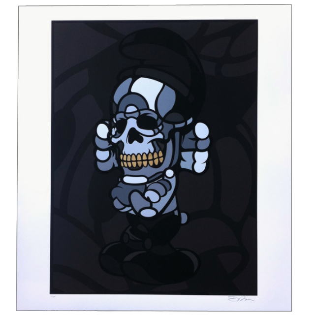 We, BlackBook Toy, are proud to announce our exclusive "Deathead S'murks" giclee print from artist David Flores and HellFire Canyon Club, which bike club Danny Boy of House of Pain runs. David Flores printed this "Deathead S'murks" giclee print exclusively for BlackBook Toy! Not only that, he handpainted its teeth gold!! Signed and Numbered by David Flores. Edition Size:25