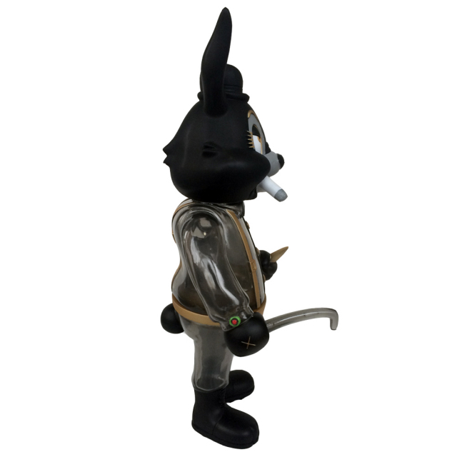 We, BlackBook Toy, are proud to announce the collaboration project with legendary lowbrow artist, Frank Kozik!! Homage to his beloved movie, A Clockwork Orange, Alex got Frank Kozik's treatment!! Here comes "A Clockwork Carrot" series!! Standing 11.25" tall. Made in Japan Sofubi toy!! Which means undeniable quality!! This Haunted Edition is clear black cast, which makes him look like he's haunted by a ghost! His head, hands and boots are matte finish, which makes the beauty of clear body stands out more.