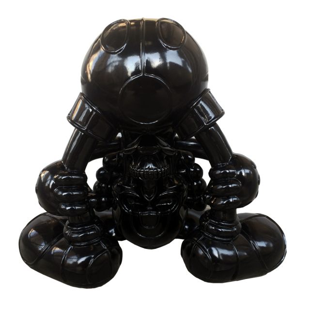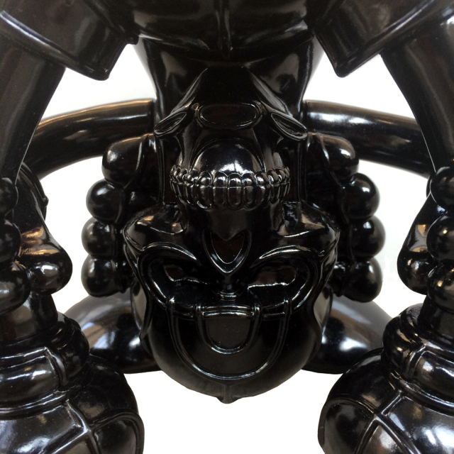 We, BlackBook Toy, are proud to announce this collaboration vinyl toy with artist David Flores and HellFire Canyon Club, which bike club Danny Boy of House of Pain runs. Based on David Flores art work, we produced this "Kiss My Ass" sofubi(Soft Vinyl) toy in "MADE IN JAPAN" Undeniable quality!! Notorious Deathshead is posing you "Kiss My Ass". Tough posing like this, he's standing 9" and 9.5" wide. Massive volume!! Sculpted by T9G. This Blackout edition would debut at 2015 SDCC. Only 25pcs available at DKE booth. We don't have online sale after SDCC, so go rush buy it before they are gone. Super big header card would be signed by David Flores and numbered. You can also enjoy coloring postcard front.