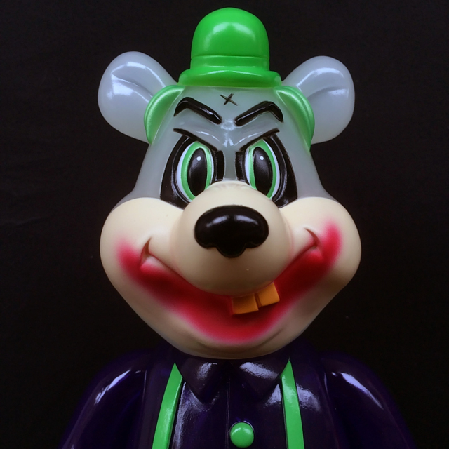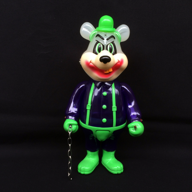 Smorkin' Labbitでお馴染みのローブローアート界の巨匠Frank Kozik(フランク・コジック)と我がBlackBook Toyによるプロジェクト、"A Clockwork Carrot"のDimにあのダークサイドヒーローをモチーフにしたSupervillain editionが登場!Kozikが敬愛して止まないA Clockwork Orangeへのオマージュ作品!劇中のドジでのろまなDroogをKozikテイストに落とし込み、立体化。前作のLil Alexがウサギですが、今回のDimはクマ!MADE IN JAPANのソフビフィギュアで11.25インチ(28.5cm)という規格外サイズで立体化!クリアPU成型のボディに乳白色成型の頭部、そして、あの口裂けメイクでDimがダークサイドヒーローに変身。原型担当はお馴染みT9G氏!今回チェーンのカラーはシルバー、ゴールドの2色あります。お好きなカラーを選択下さい。是非とも同時リリースのLil Alex Supervillain 2nd editionと合わせてゲットしてください。Lil Alex Supervillain 2nd editionとDim Supervillain editionを同時購入で非売品ポスターを特典としてお付け致します。