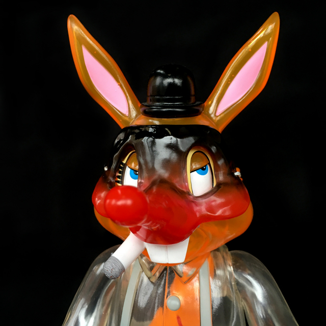 *人参を食べる前。頭部はクリアオレンジ成型。頭部以下はクリア成型。MADE IN JAPANソフビの美しさが際立ちます。商品お届け時はこの状態です。中に人参を入れる際はドライヤーでよく温めた後、上胴と下胴を分けてから入れてください。