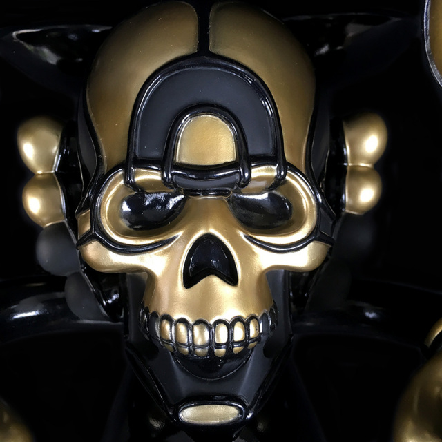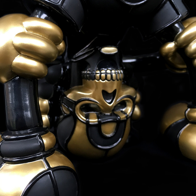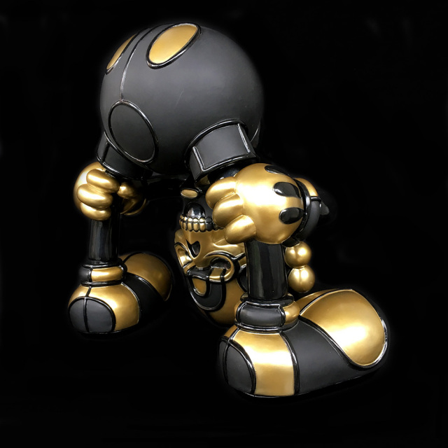 2500yen(Asia),3500yen.(North/Central America, Europe,Oceania), 5000yen(South America, Africa)We, BlackBook Toy, are proud to announce this collaboration vinyl toy with artist David Flores and HellFire Canyon Club, which bike club Danny Boy of House of Pain runs. Based on David Flores art work, we produced this "Kiss My Ass" sofubi(Soft Vinyl) toy in "MADE IN JAPAN" Undeniable quality!! Notorious Deathshead is posing you "Kiss My Ass". Tough posing like this, he's standing 9" and 9.5" wide. Massive volume!! Sculpted by T9G. This "Stay Gold" edition is the first fully painted one. You can't go wrong with gold, black and matte black combo. You can easily see how hard we've been working on this full painted one. You can also enjoy coloring postcard front.