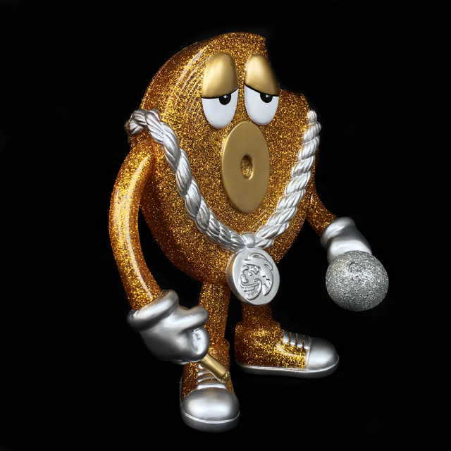 The shipping and handling fee for this item to overseas is 1800yen(Asia),2500yen.(North/Central America, Europe,Oceania), 3500yen(South America, Africa)We, BlackBook Toy, are proud to announce the new sofubi project with COOKone and Delicious Vinyl. Their collaboration character Mr.12 comes to life by BlackBook Toy. Microphone in his right hand and joint in his left hand. He's ready to start a huge party!! His bling bling necklace bears classic Delicious Vinyl logo. 8points articulations(Arms, wrists, legs, ankles). Standing 19cm. Sculpted by Kenth Toy Works. This Gold Disc edition is casted in clear with tons of gold glitters!! So bling bling!! When you purchase Gold Disc and Platinum Disc at the same time, you would be getting 1000yen off. These bling bling boys would bring you good luck. Mr.12 sofubi series comes in special pizza box and a postcard.