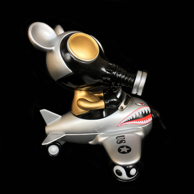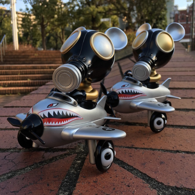 We, BlackBook Toy, are proud to announce the resurrection of "that" sofubi toy!! Yes, Mousemask Murphy in Airplane, previously produced by the legendary toy shop, ZacPac. This Tokyo Gold edition would make a great pair with Bangkok Gold, which is PlayHouse(Thailand) exclusive released in May 2016. Gold, Silver and Black combo with Shark Teeth prints. He would bring you good luck, tons of good luck!! The wheels of airplane is YinYang. So sick!! Sculpted by Knuckle of Little Chop Design! MADE IN JAPAN, Undeniable quality Sofubi toy!!