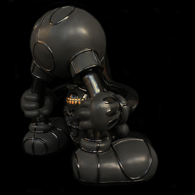 For 2pcs, 2800yen(Asia), 3800yen(North/Central America, Europe, Oceania), 5300yen(South America, Africa)We, BlackBook Toy, are proud to announce this collaboration vinyl toy with artist David Flores and HellFire Canyon Club, which bike club Danny Boy of House of Pain runs. Based on David Flores art work, we produced this "Kiss My Ass" sofubi(Soft Vinyl) toy in "MADE IN JAPAN" Undeniable quality!! Notorious Deathshead is posing you "Kiss My Ass". Tough posing like this, he's standing 9" and 9.5" wide. Massive volume!! Sculpted by T9G. This is NINJA edition. This edition is shiny black and matte black combo. Leaving DF iconic BK bold lines clean and beautiful shiny black. And his teeth are bling bling gold. You can easily see how hard we've been working on this full painted one. You can also enjoy coloring postcard front. From this edition, package would be polybag with header card. As a bonus, this edition comes with BBT Skull pin, which is also drawn by David Flores.